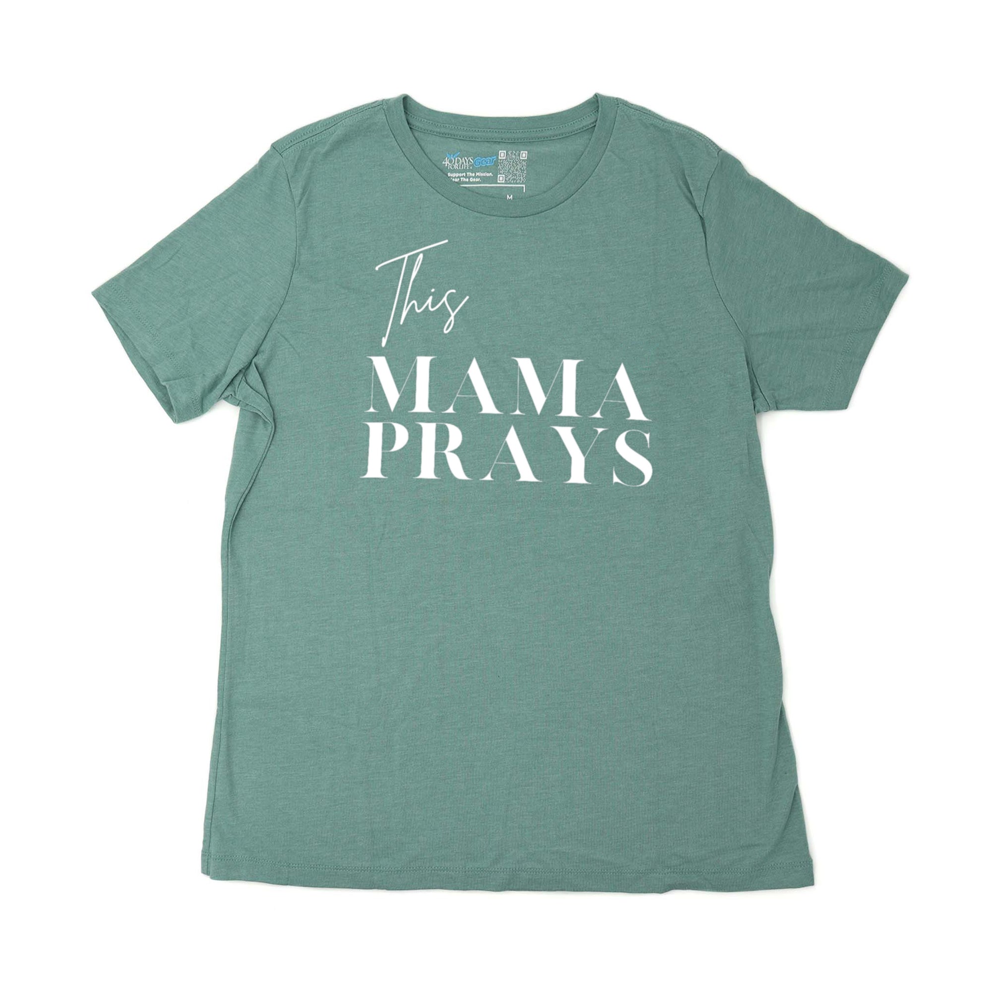 This Mama Prays women’s relaxed fit t-shirt from 40 Days for Life Gear is soft, comfortable, and reflects a life of prayer for family, children and your pro-life values. Perfect for everyday wear, this easygoing women's shirt pairs great with jeans or layers beautifully for a dressed-up look making it a go-to piece you'll reach for time and time again.